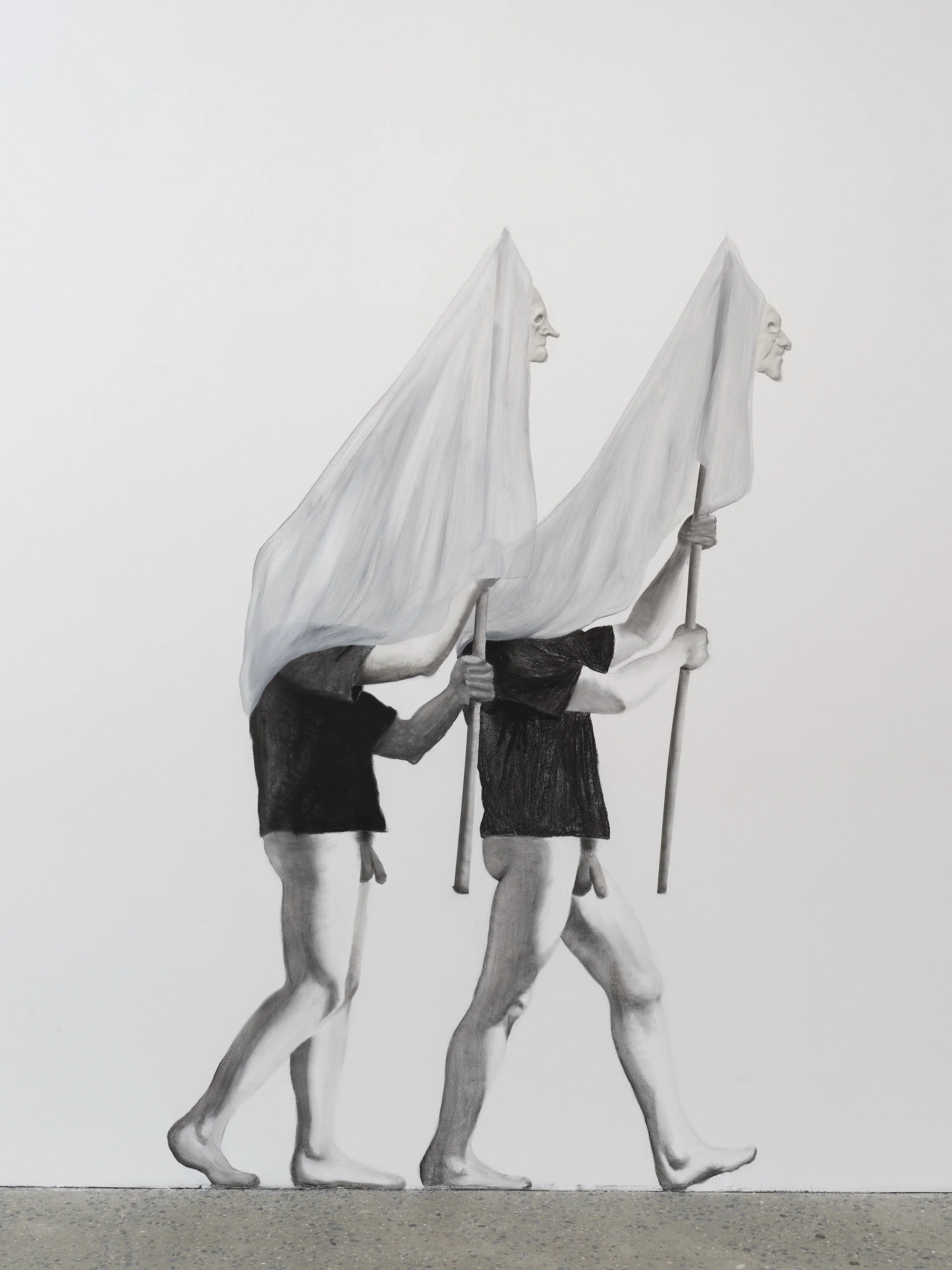 Coverers 19 1/2” x 19 1/2” oil and soft pastel on paper, 2018